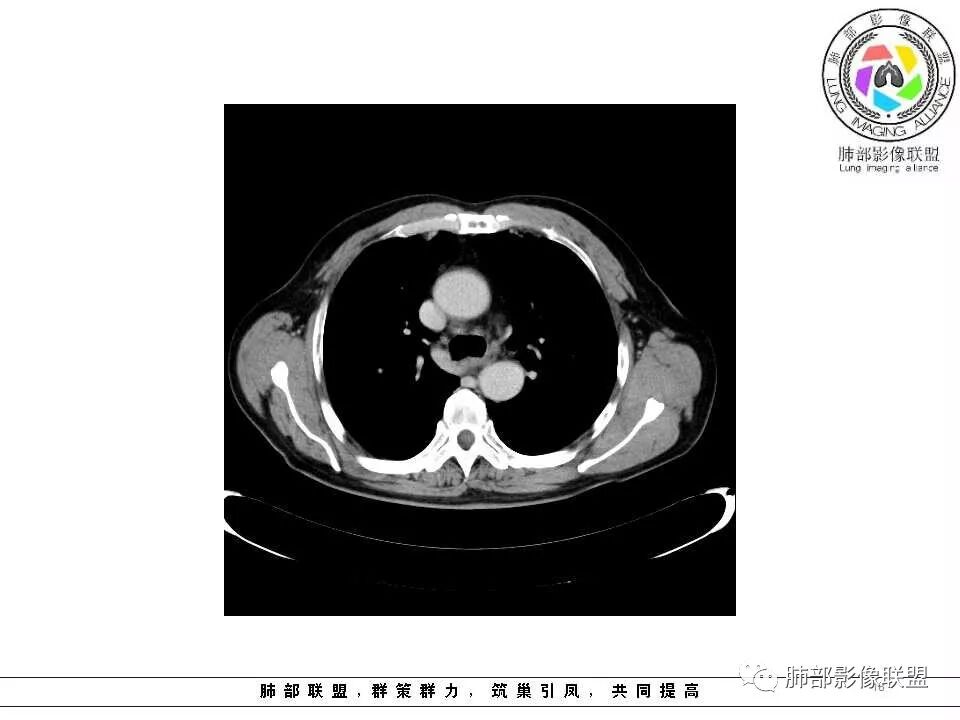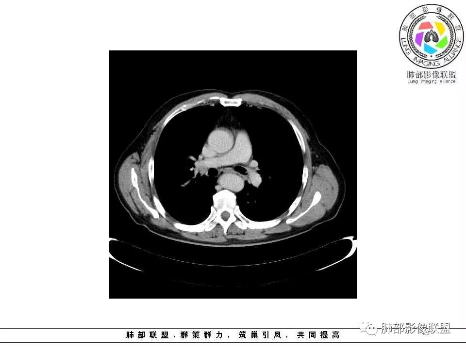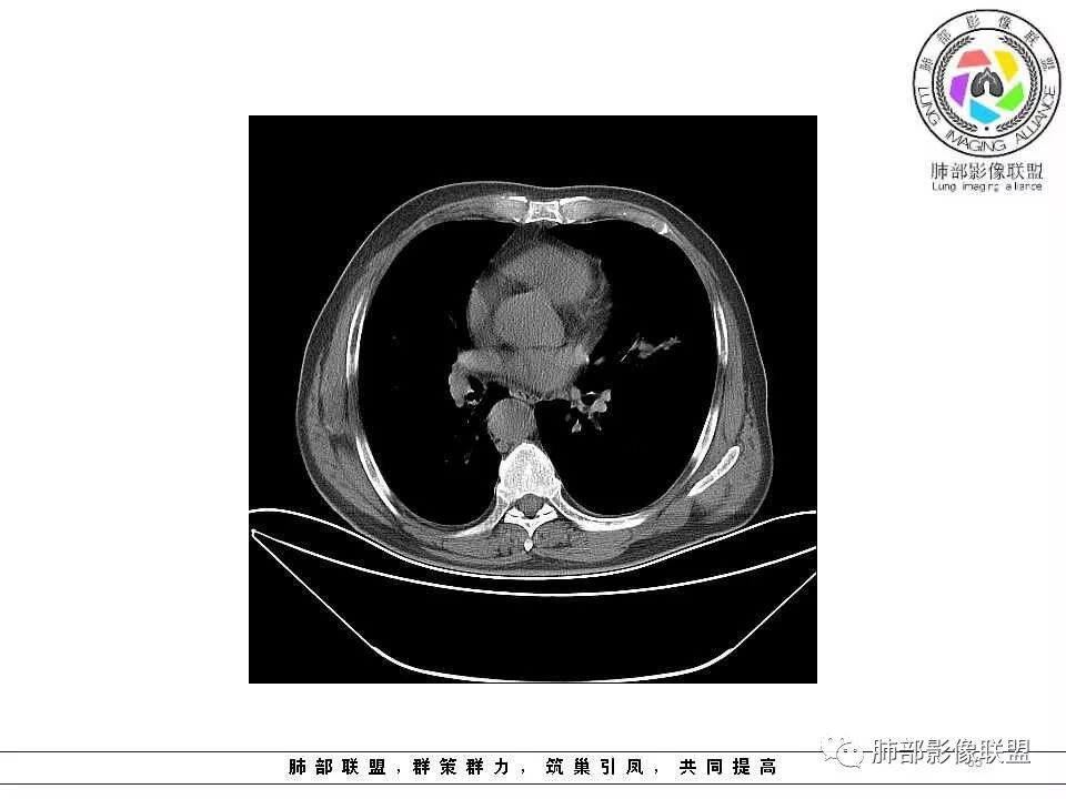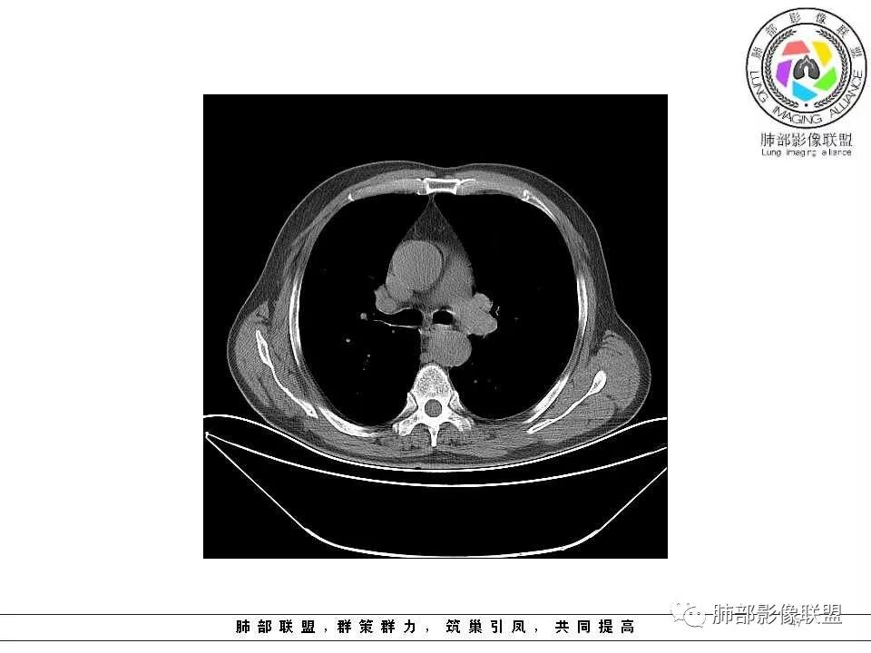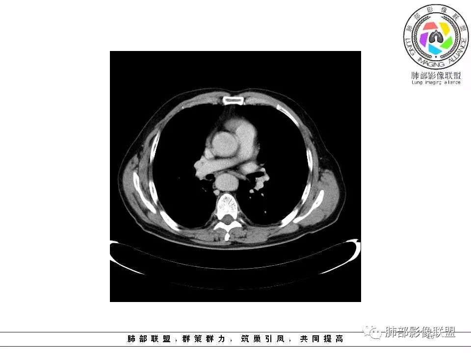 @南边 我觉得最关键的是两个问题,一是腔内堵塞这个结节的纵隔窗看不到,所以到底是不是结节样肿物不明确,第二个就是没有增强,这个腔内病变与周围结节的强化性质是否一致,强化程度及强化曲线如何?