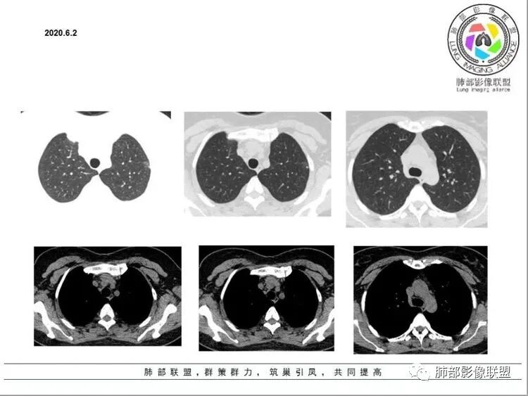 3.患者丈夫有肺结核病史,理应考虑肺结核可能性,但患者病灶周围没有典型树芽,而且病灶的形态较为单一,分布特点都不大符合典型的结核影像学特点。