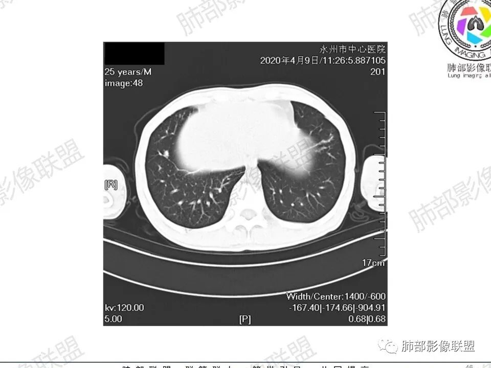 薏米:青年男性,慢性咳嗽,咳痰,气短,贫血,淋巴细胞低,尿隐血阴性,双肺散在多发结节,斑片,树芽影,支气管充气,肺门,纵隔淋巴结肿大,融合趋势,考虑淋巴瘤,鉴别结核