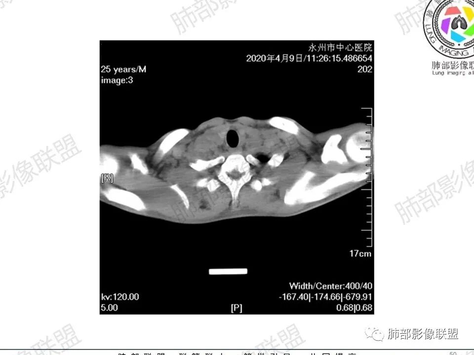 2.右肺多发微小结节影,部分沿血管束分布,尽管未见小叶间隔改变,但双肺门淋巴结增大确实应当首先排除结节病,但经验上说,结节病的增大淋巴结密度往往较高、较密实,边界往往清楚,“独立性”很强,绝无“融合之嫌”!此外,较少出现贫血、脾大,临床表现也往往较轻微。