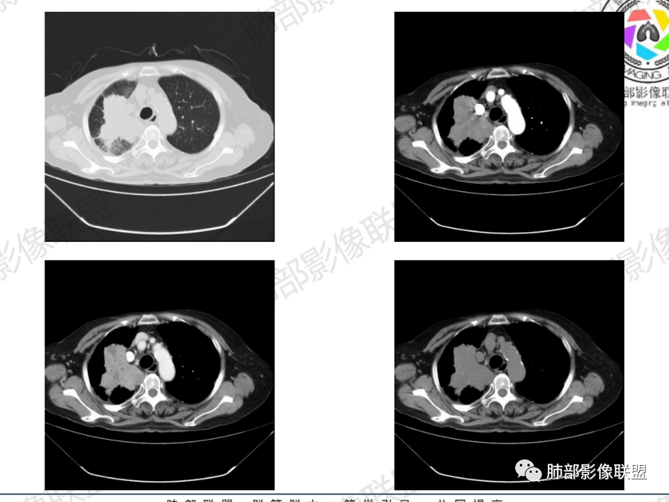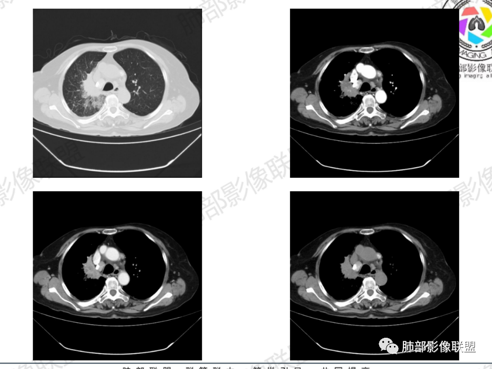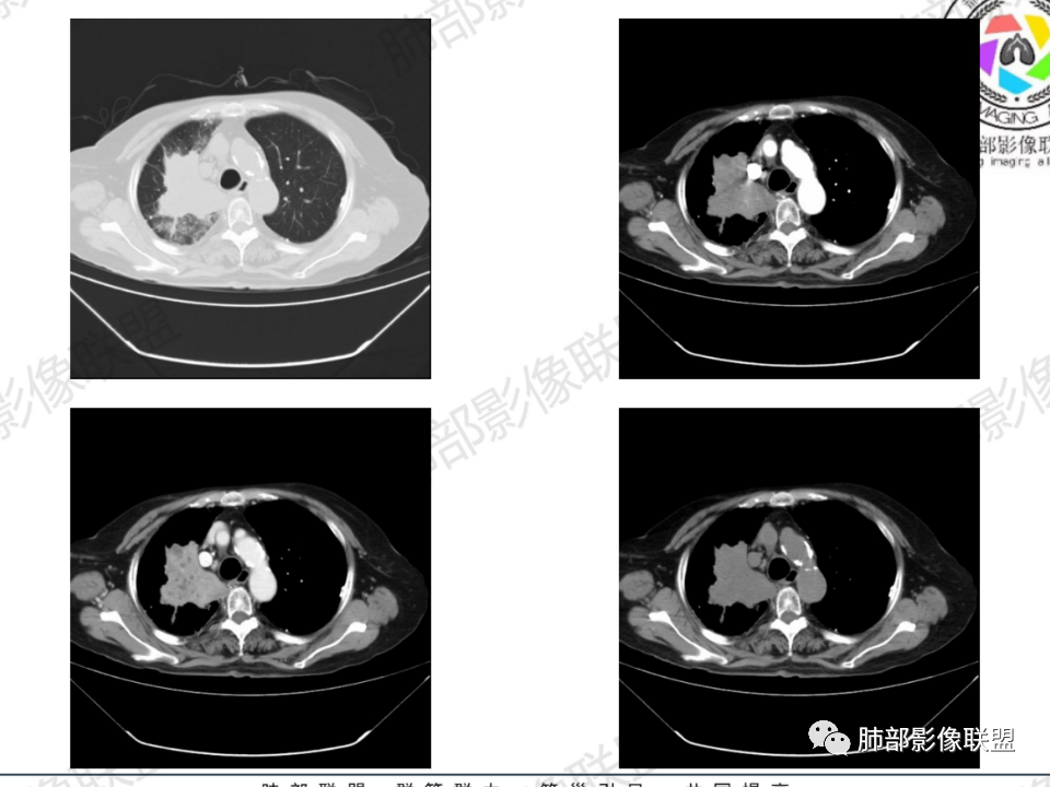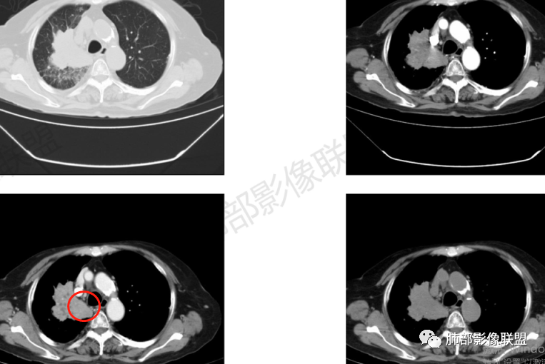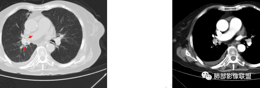 这个区域我们看到密度与周围一致,并不是肺癌伴周围不张的感觉,所以鳞癌暂时是不支持的