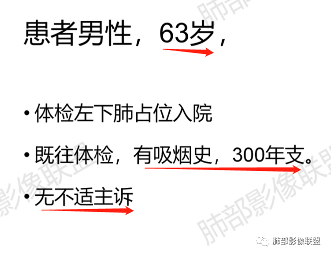 1、老年男性,大量吸烟史,无症状,体检左下肺孤立结节。