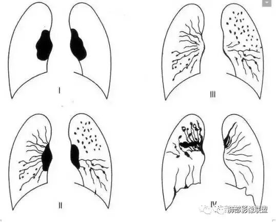 2.小细胞肺癌纵隔肺门淋巴结转移:一般有原发灶,纵隔肺门淋巴结转移融合,呈娘小崽大表现,一般由于淋巴结引流原因,呈单侧肺门淋巴结肿大多见。