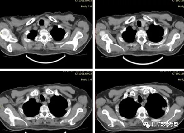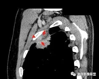 而该病例栽赃不明显,与增厚的胸膜分界比较清晰