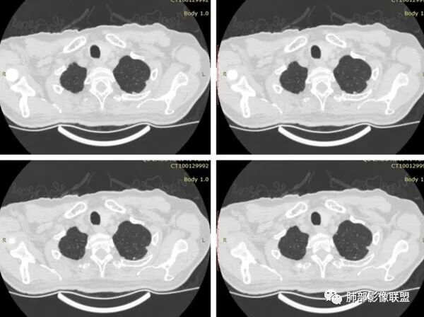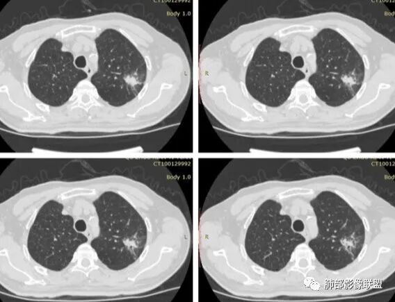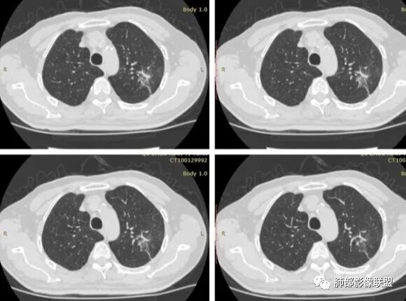 4、部分区域膨隆,未见支气管截断,肺门纵隔未见肿大淋巴结等,恶性征象少。