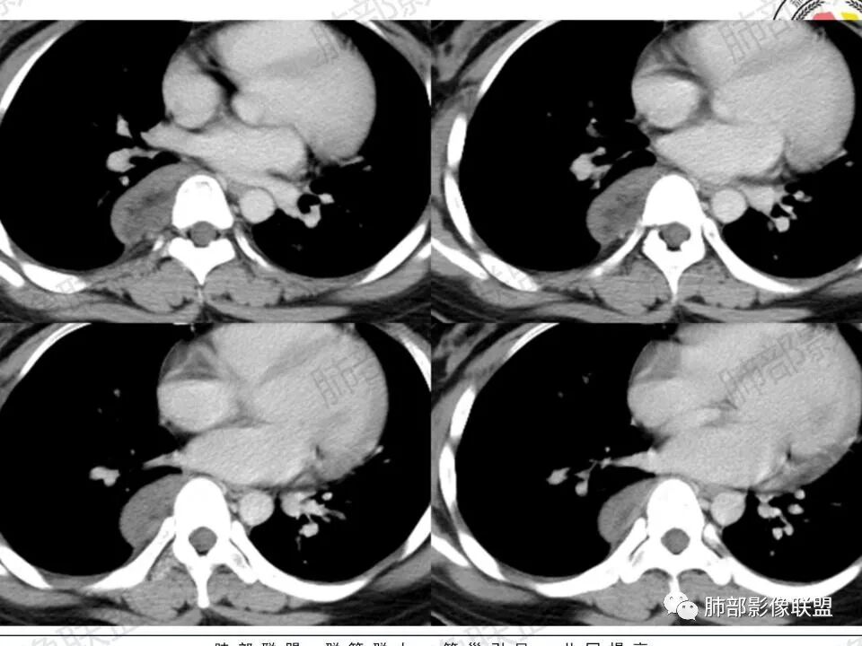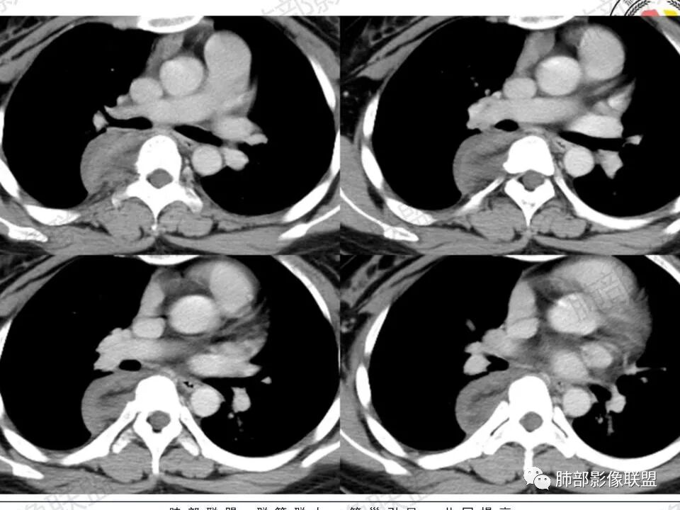 突破外脂肪层,良性,应该是起源胸膜外的纵隔,再加上供血体循环,支持纵隔来源。基于定位,考虑神经源形肿瘤,髓外造血,cd和畸胎瘤。还有淋巴管瘤,就是脉管瘤,位置不典型,但是也许不典型表现,cd强化不够,髓外造血强化也高的。猜一下,1.常见肿瘤不典型表现必须考虑,即神经源形肿瘤2.抓住脂肪考虑:畸胎瘤,脉管瘤。