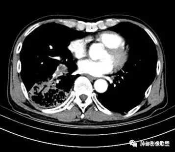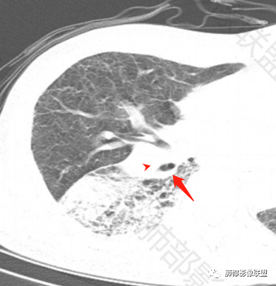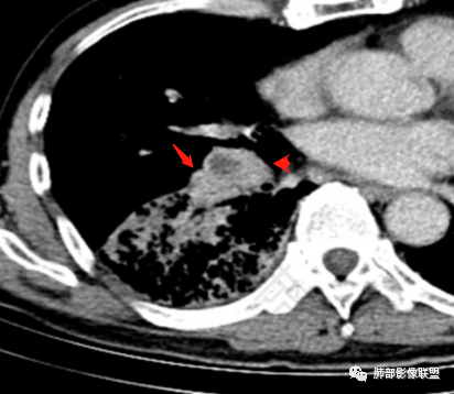 主要相关支气管未见明显截断,病灶内血管影较为完好,也较少见于肺鳞癌。