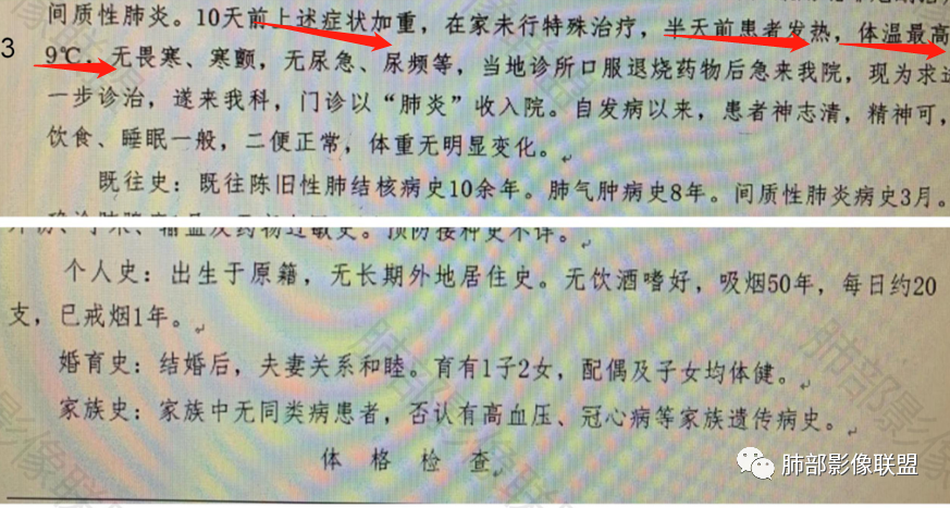 1.临床资料:老年男性,慢性病程,咳嗽咳痰8年,加重10天,发热半天。炎性指标高、CA199升高,既往有肺结核、慢阻肺、间质性肺疾病史。