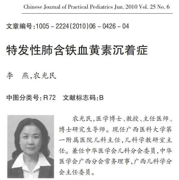 小儿,咯血、贫血和弥散性肺浸润,考虑肺含铁血红素沉着症