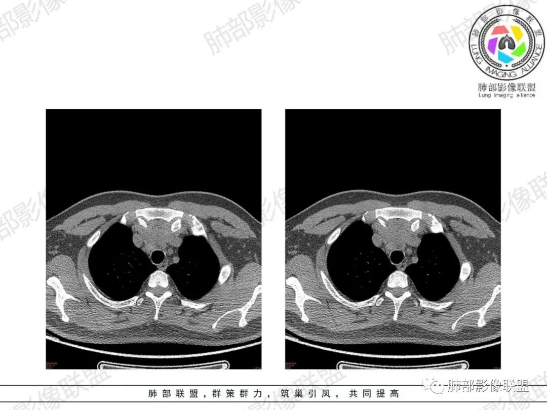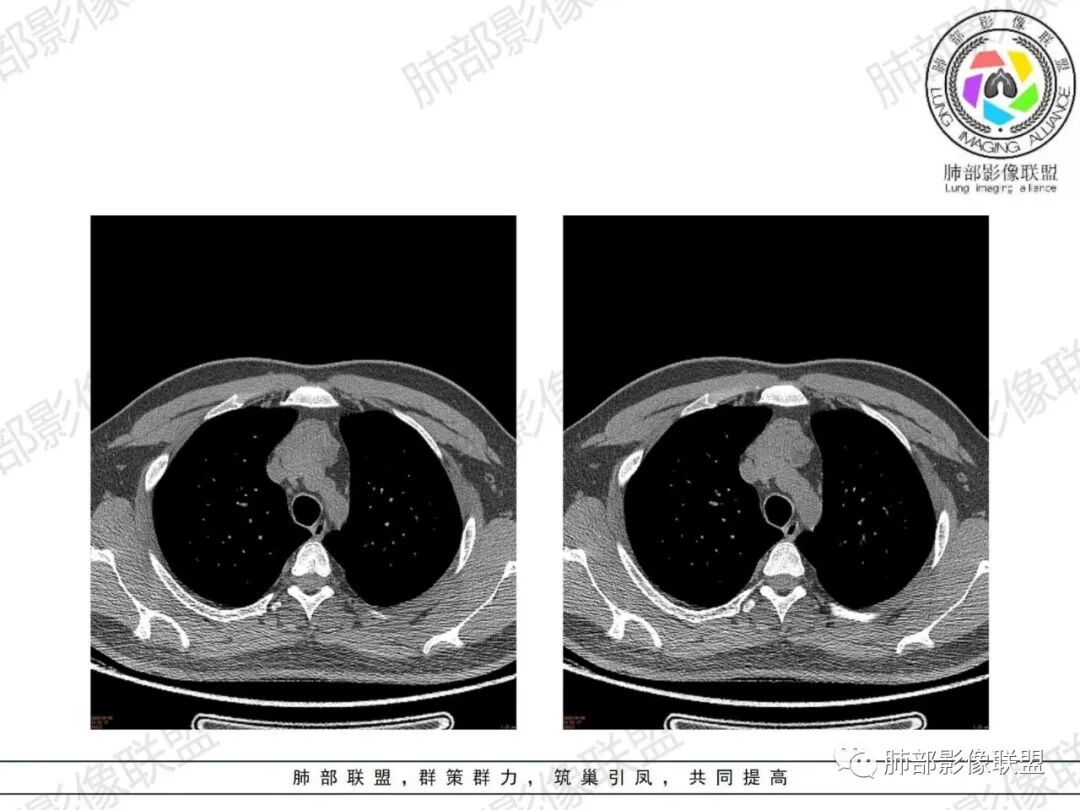 King:确实在影像不足的情况下,年龄和症状是重要考量因素。影像形态膨胀不足,钻隙明显,密度似夹脂肪,首先胸腺增生,其次淋巴瘤,胸腺瘤或癌不首先考虑了。