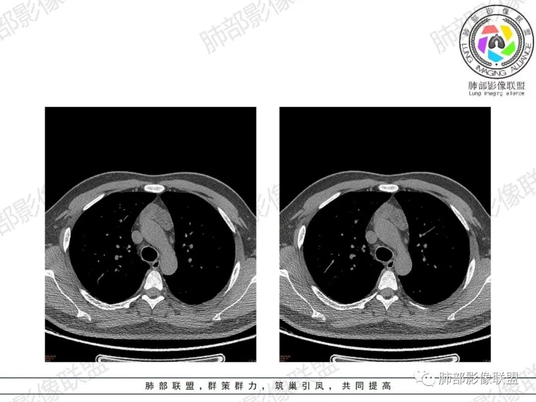 2、下半部分,形态自然,边缘稍膨隆,内部密度实性夹杂稍低密度影,而且是线样低密度影,比较自然走形,支持胸腺组织增生或残留。如果其他肿瘤所致,应该是边缘膨隆,类圆形,内部密度均匀,或部分区域坏死,或者结节状灶之间间隔。所以这个首先:胸腺增生或残留应该有。