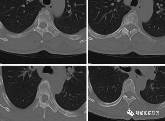 5.胸椎及肋骨见虫噬样吸收破坏,骨皮质不完整,未见硬化,骨旁软组织影增宽,未见死骨。
