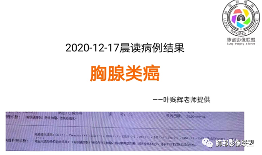 Yishion:好像黄勇老师说过一般胸腺类癌的话容易胸椎破坏,但我觉得更倾向于淋巴瘤。