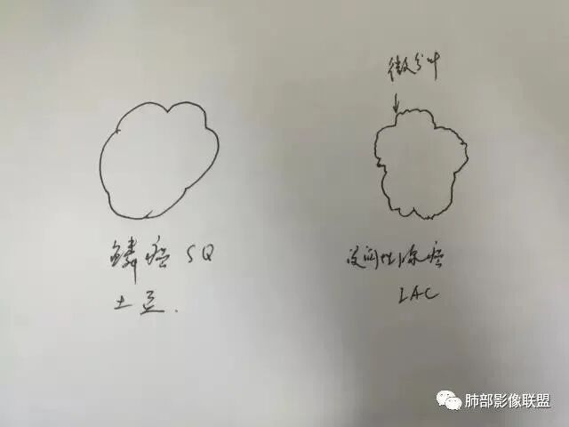 与普通腺癌的差别:分叶明显,每一个分叶表面相对较圆顿,不像肺腺癌分叶表面有微分叶或棘突;