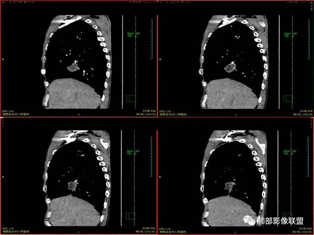 “周围中央型”:长大了哪里是初始点难辨。周围型也是长在小叶或亚段中央。