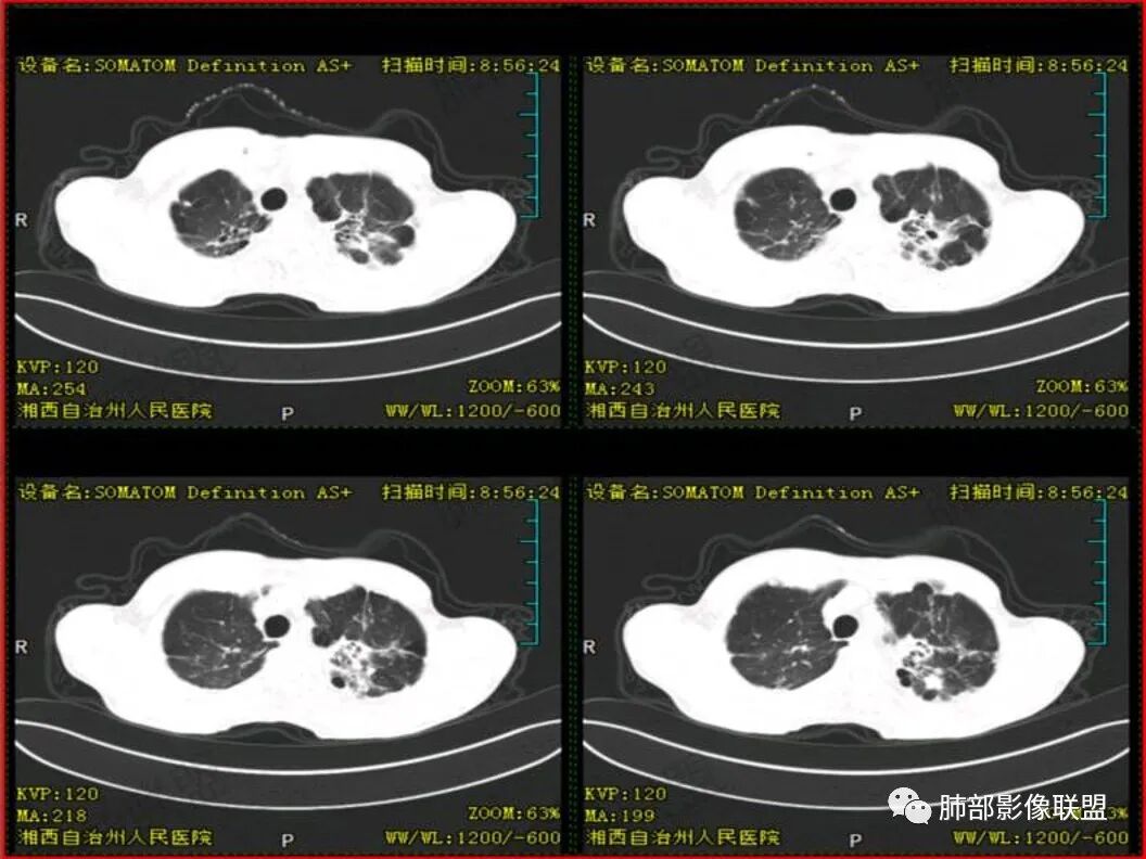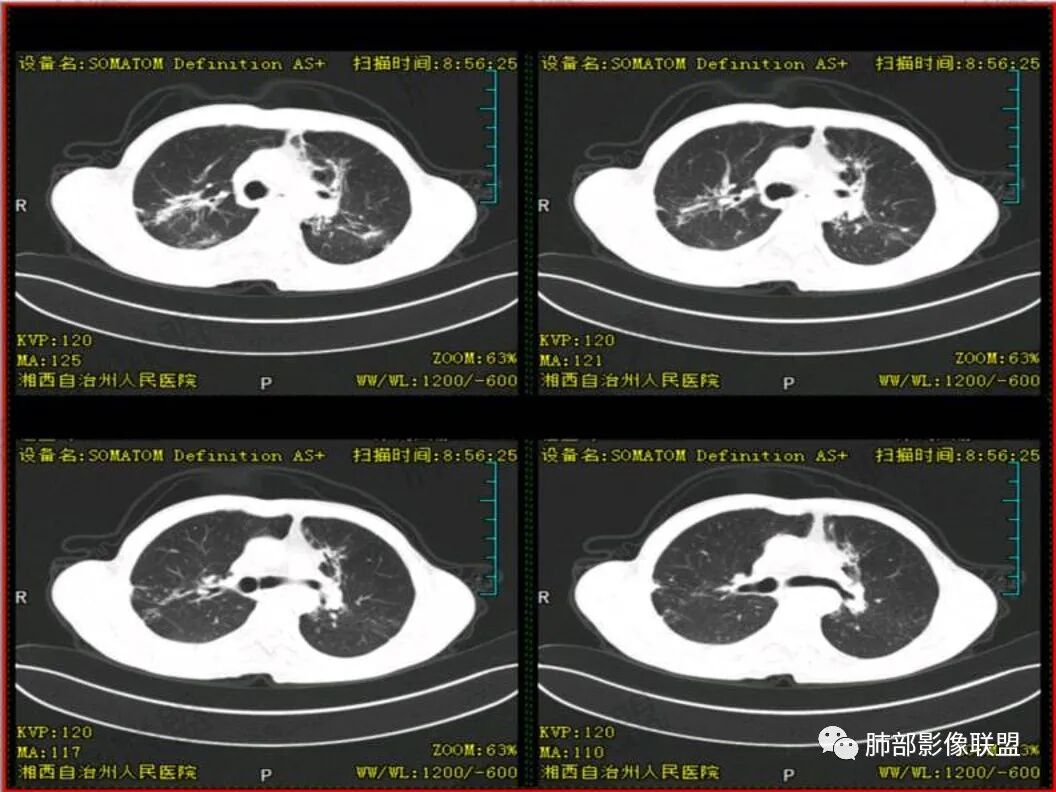 中央型(最多见):局部支气管壁的增厚 → 支气管的狭窄至截断,远端阻塞性改变 → 继续扩大