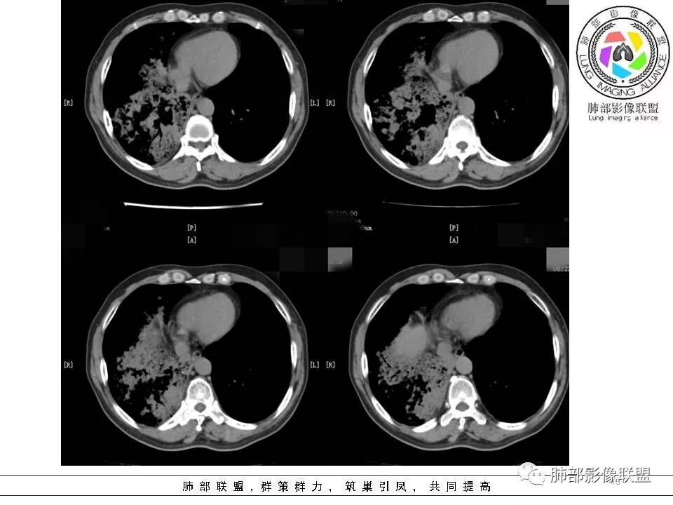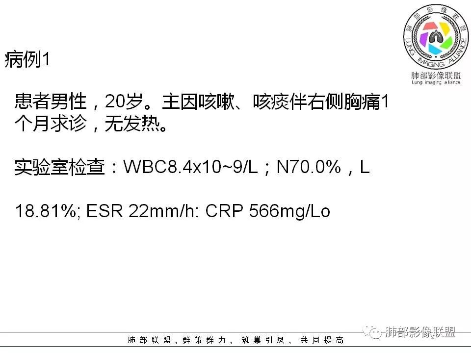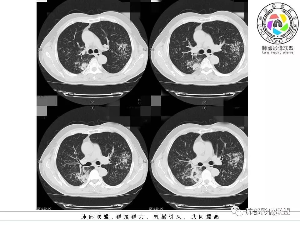病例1:两肺实变,蜂窝样改变,考虑结核,鉴别于淋巴瘤。