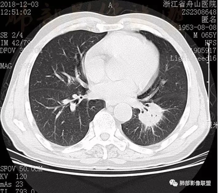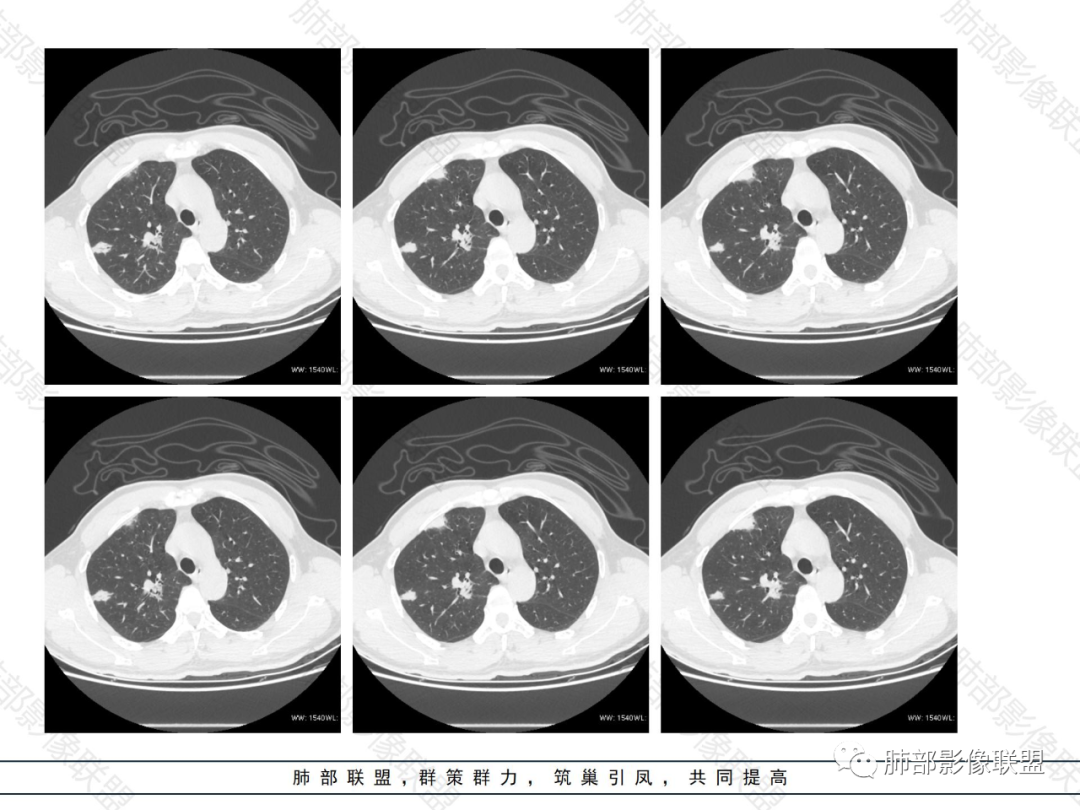 老年男性,发现占位半年,双肺多发结节,病灶边界清晰,浅分叶,部分支气管进入后堵塞,部分病灶内部密实,无增强,考虑真菌感染,淋巴瘤待排除。