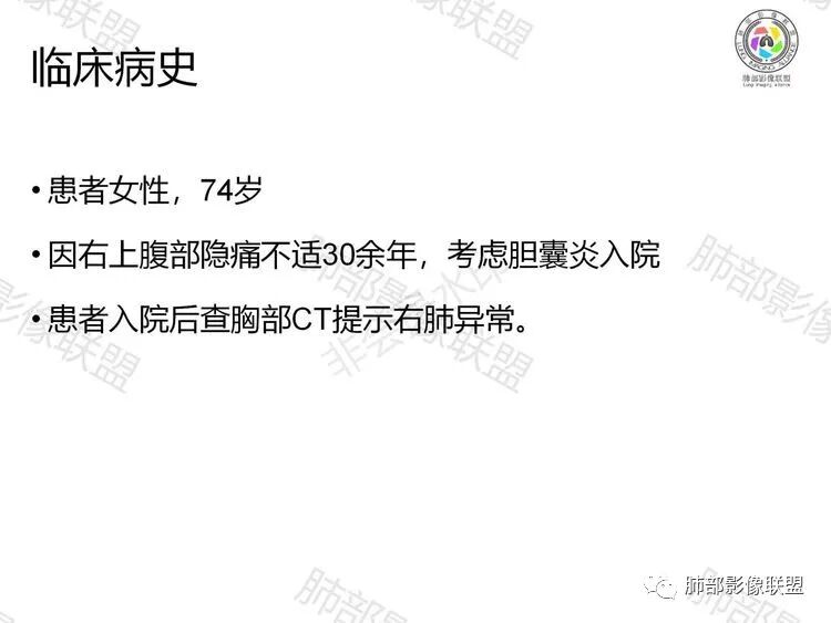 分析:患者症状及病史与肺部影像不具有相关性。影像上,良性征象居多,多结节融合感而看不出明显深分叶,细长毛刺等等。可惜本例未行增强扫描。