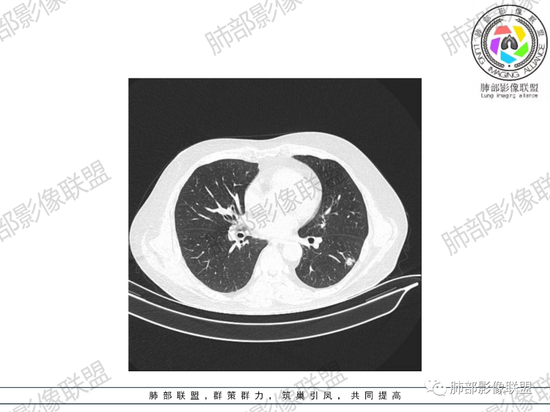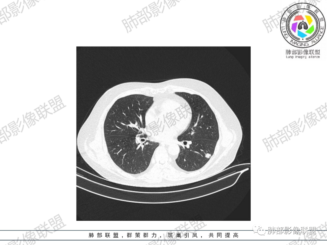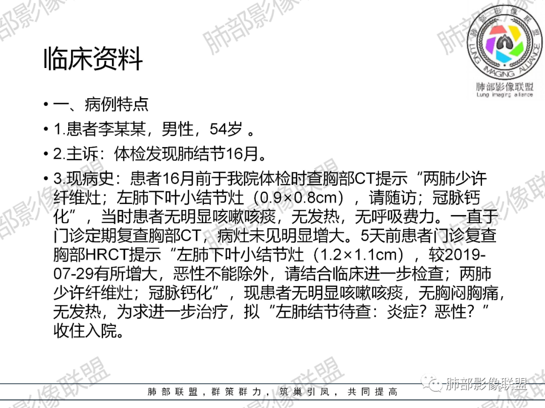 1.中年男性,体检发现左肺下叶结节影16个月。