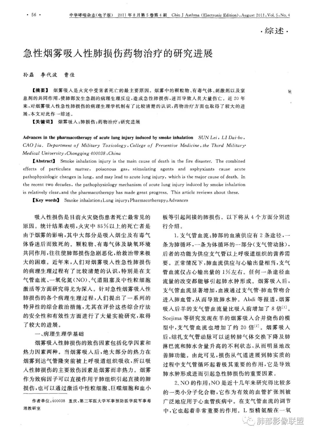 文献来源:中华哮喘杂志2011年8月第5卷第4期;作者:孙磊 李代波 曹佳 (第三军 医大学军事预防医学院军事毒理教研室 重庆 400038 )