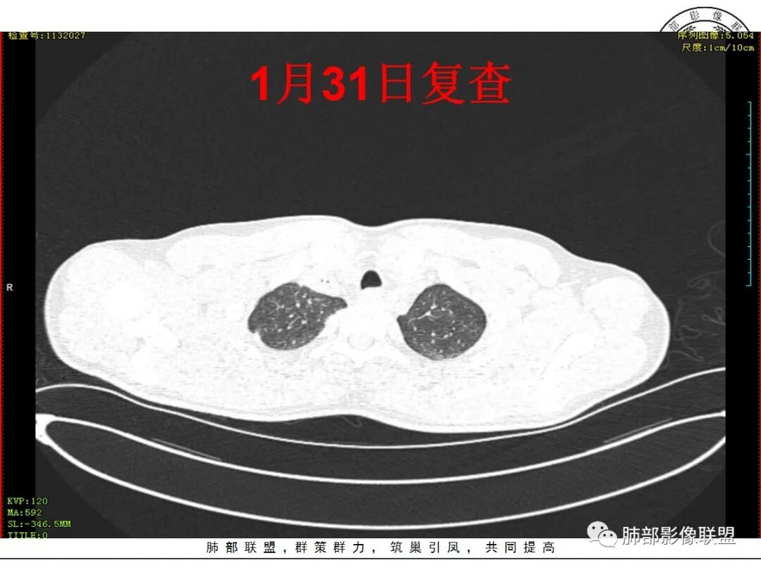结合病史,最终诊断是 “急性烟雾吸入性肺损伤”,影像学表现主要是肺水肿及弥漫性肺泡损伤改变,因为烟雾气体吸入肺内分布以上肺显著,因此影像学表现也是累及上肺更明显。损伤因素包括大量一氧化碳 二氧化碳 一氧化氮等燃烧产生的有毒气体,也有烟雾粉尘颗粒对气道黏膜的损伤。
