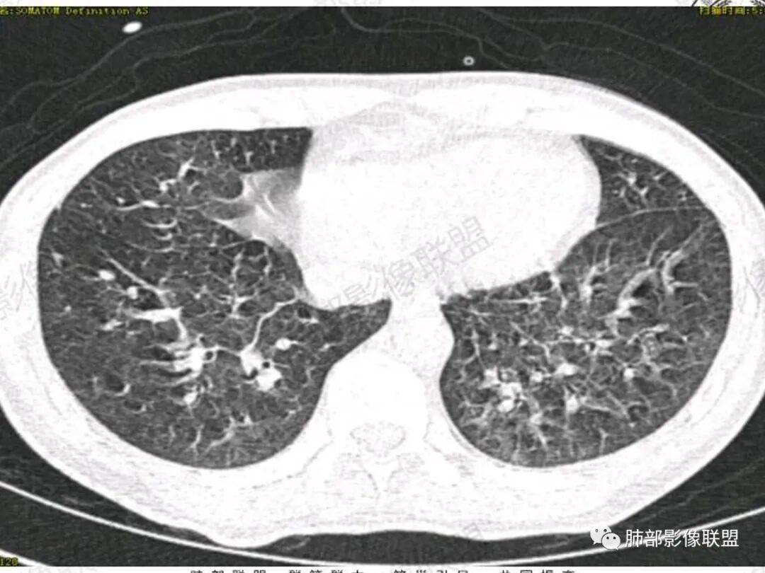感染 急性起病,分布对称,腺泡结节,不太好解释