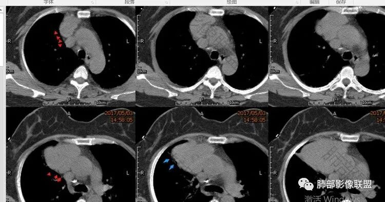 晨读:51岁女性,前纵隔偏右侧占位,分叶?密度比较均匀,肿块内部见斑点状的钙化影,增强均匀强化,体动脉供血?从年龄看排除生殖细胞肿瘤,未见明显脂肪成分,基本排除畸胎瘤,首先考虑胸腺瘤。鉴别淋巴瘤。