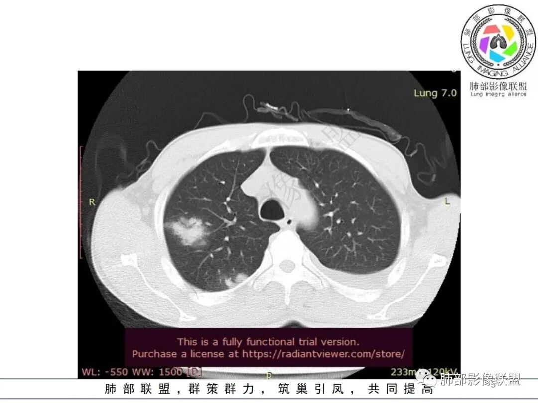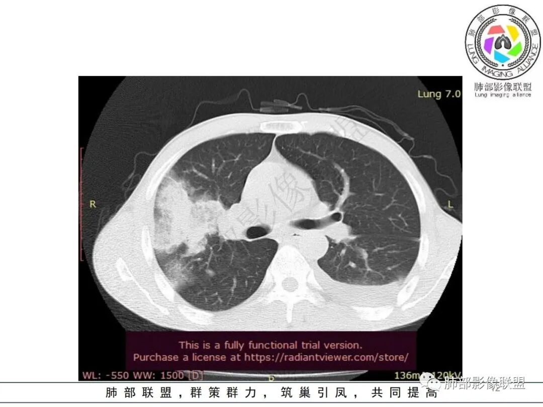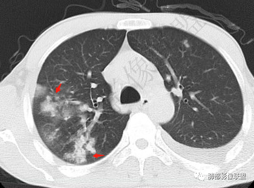如果我们从影像给出的提示:急性炎症,大叶性为主