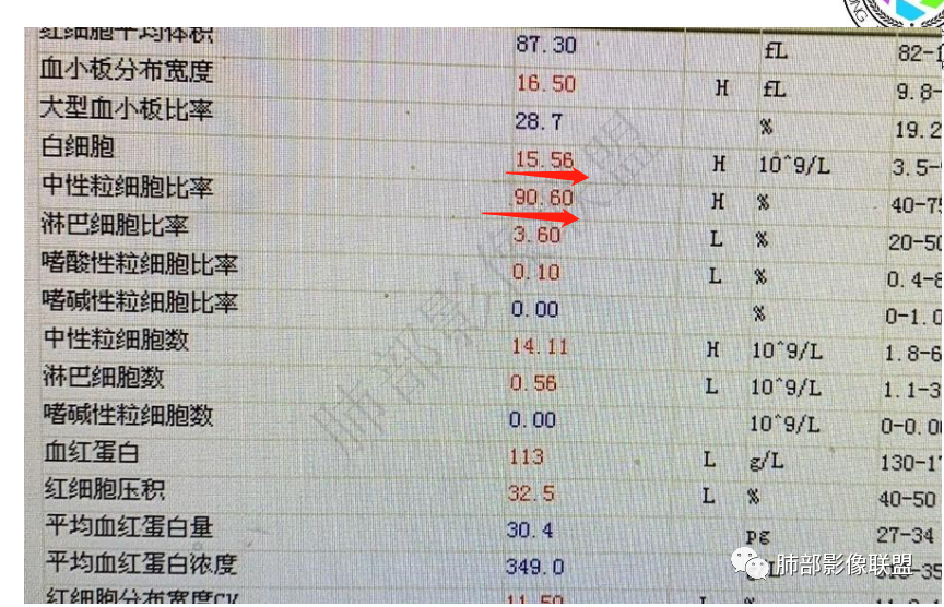 实验室:中性粒细胞增高,轻度贫血。