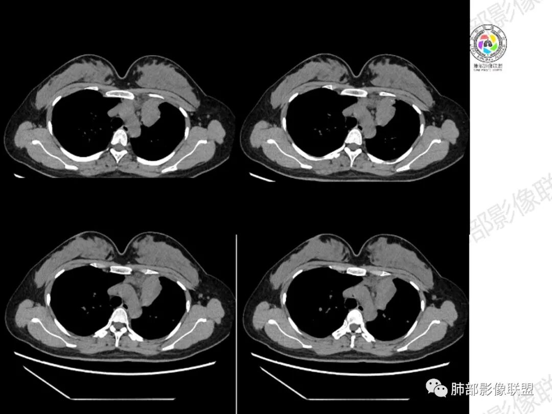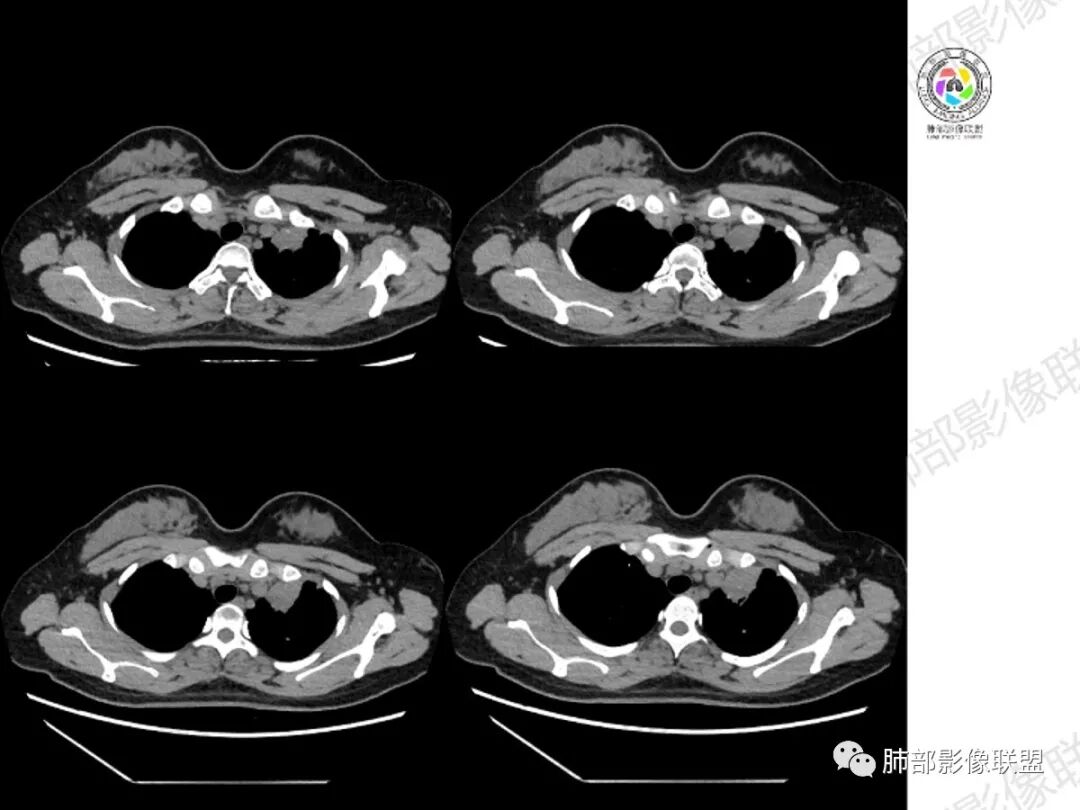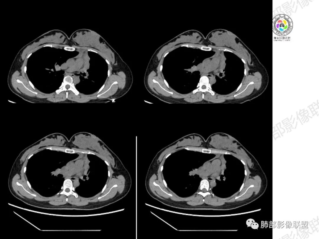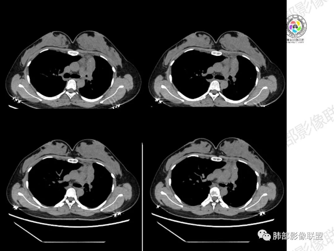 其实黏表和结核的鉴别,不是局部开口处是否强化,而是结核的粘液栓没有强化,而黏表的粘液栓中含有肿瘤细胞生长,会有不均匀强化。晨读那些低密度区都看不到强化。就不太符合黏表了。