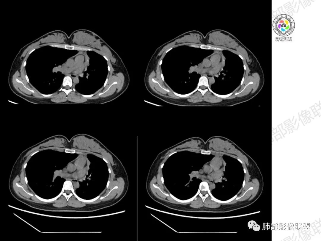 7.关于病灶的部分显著强化,及肺结核灶常有,也非粘液表皮样癌特点。但如强化部分为周围萎陷肺组织,则另当别论。