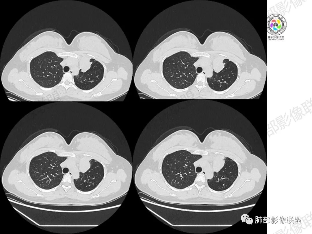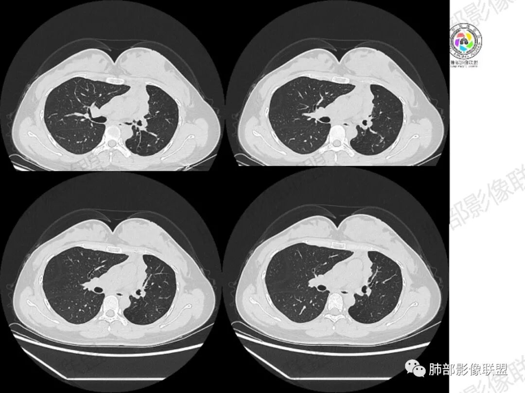 主要是黏表不好解释两个问题:第一,中间的低密度肉眼看,强化并不明显,如果是黏表的粘液栓,应该有明显的强化的。第二,肺内多发的小结节,就要考虑转移,但黏表本身是低恶性肿瘤,发生这么明显的转移的还是相当少见的,本身有强化的还是相对多一些。分析的时候,尽量还是以常见表现为准,否则都要考虑到少见或不典型表现,那咱们的影像诊断就没法进行了。