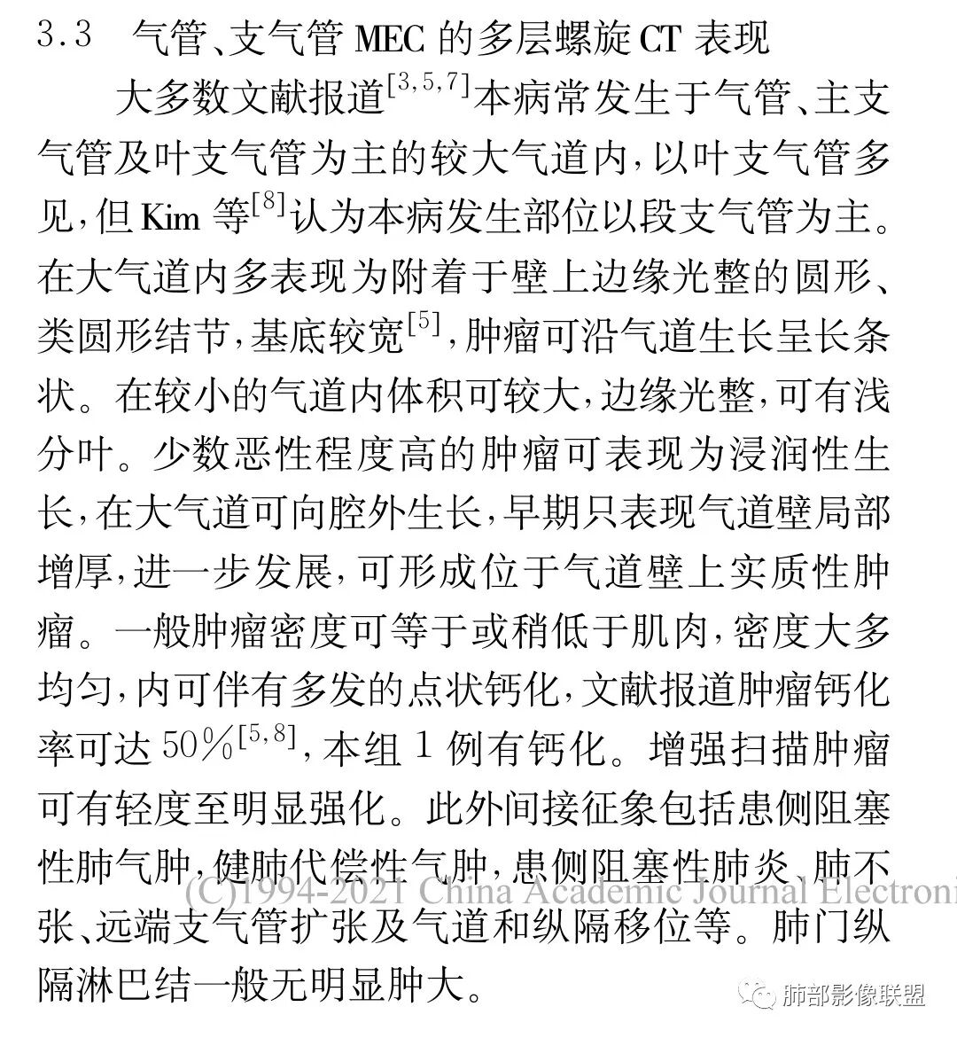 江森等.气管、支气管黏液表皮样癌的多层螺旋CT表现.临床放射学杂志,2006(25)