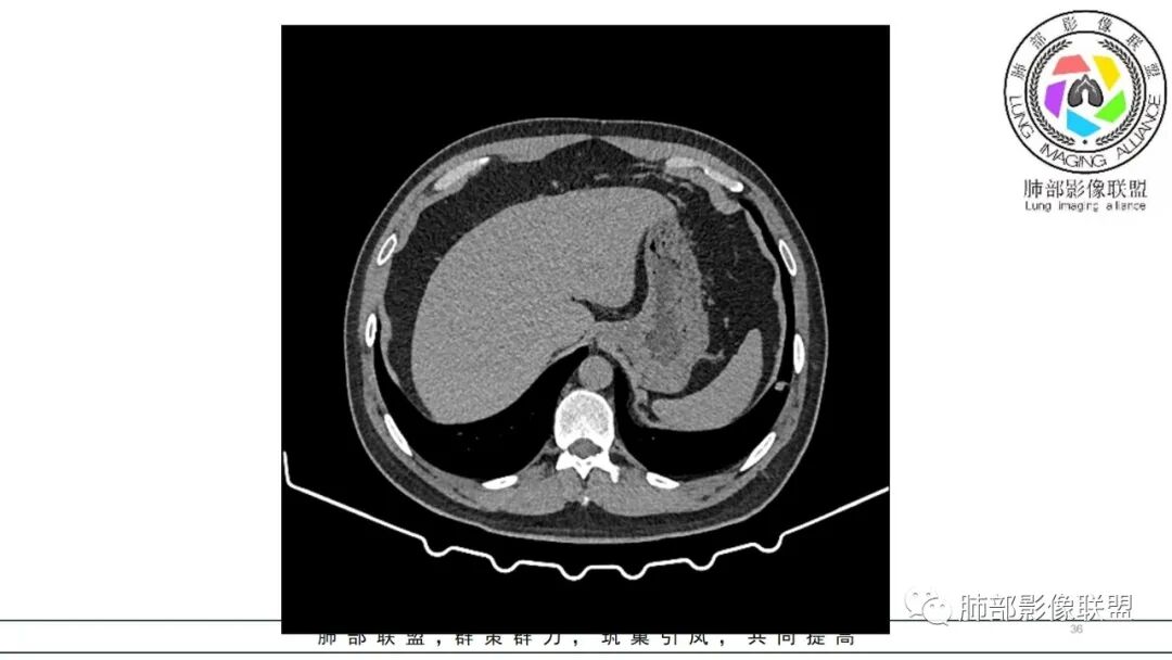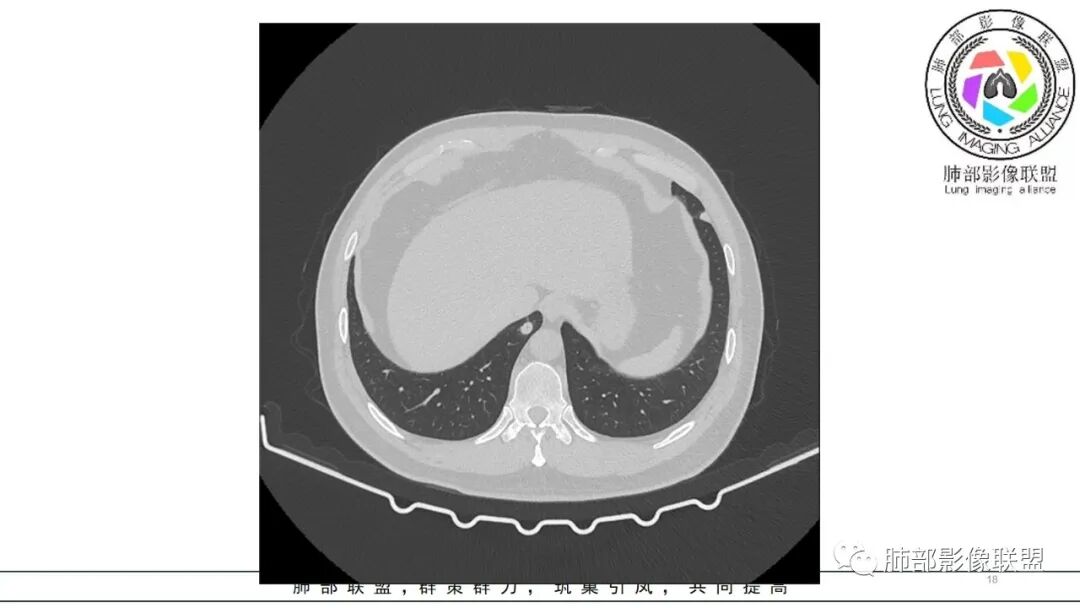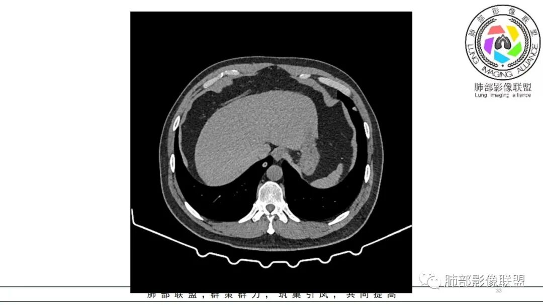 双肺多发结节,以胸膜下分布为主,形态相似,边缘较规整,少部分边缘晕征,无分叶毛刺;右肺中下叶多结节融合并实变影,边缘平直、U形征,跨叶。