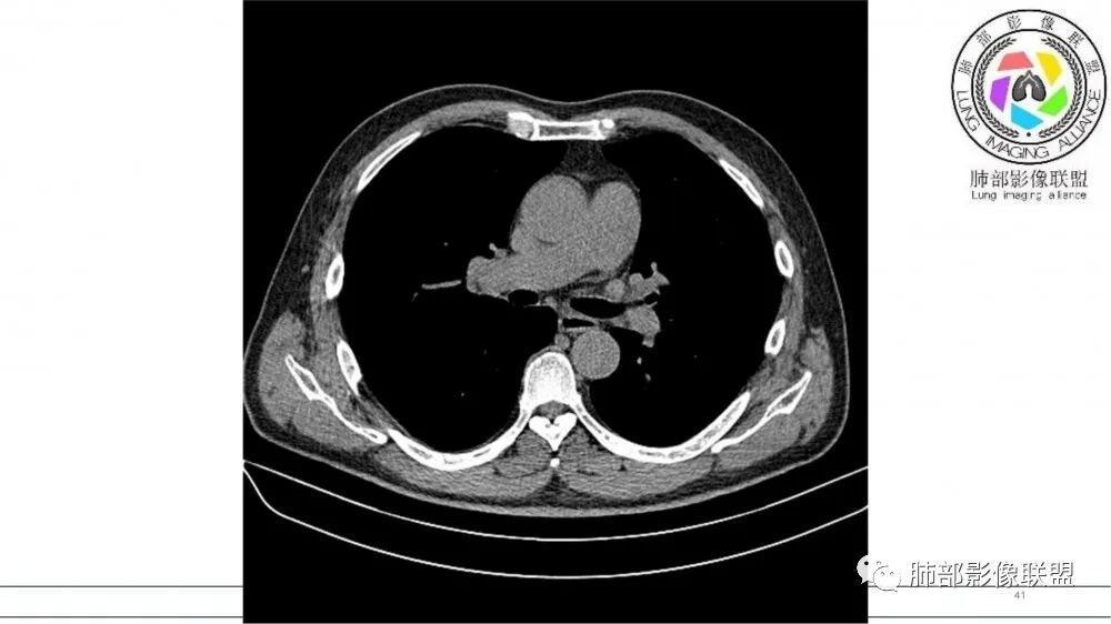 老年男性,吸烟,指套征,蠕虫征,阻塞性炎症不严重。可见血管穿行,密度均匀,轻度强化,首先考虑小细胞肺癌。鉴别鳞