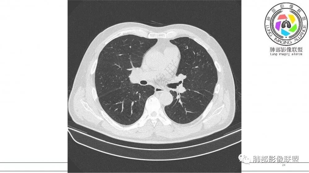 @白国峰 沈阳市十院 呼吸 请教下,白老师,ABPA,需不需要支扩的基础,或者本身就可以引起支扩?小细胞有不像的地方是,分支太多,太长,作为恶性肿瘤这是很没面子的事,常规应该一个支气管撑大,临近支气管来不及进去只能成为小尾巴状,这里三条支气管一字平肩王,没有主次,这是不踏实的地方,而且临床喘憋明显,abpa可能要往前放一放。