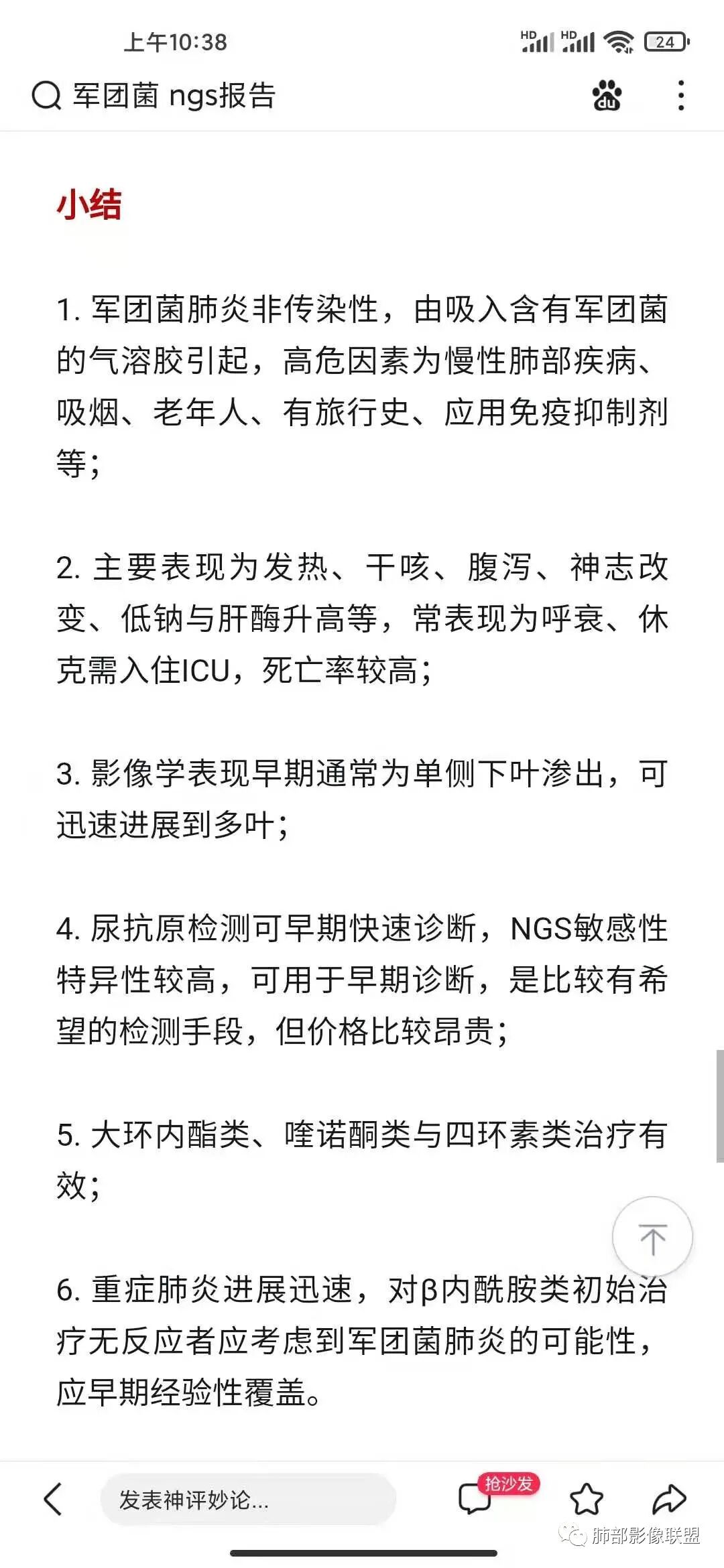 综合流行学、临床及影像,目前诊断:军团菌肺炎