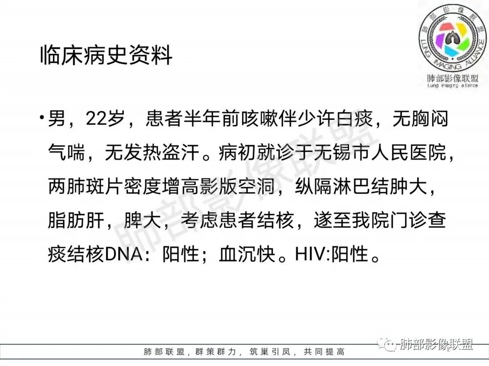 临床:年轻男性,22岁,病史半年。痰阳,HIV