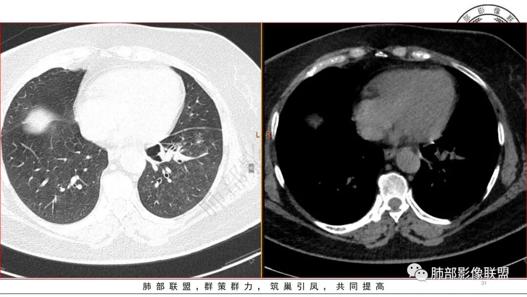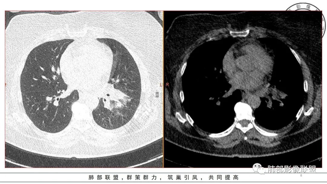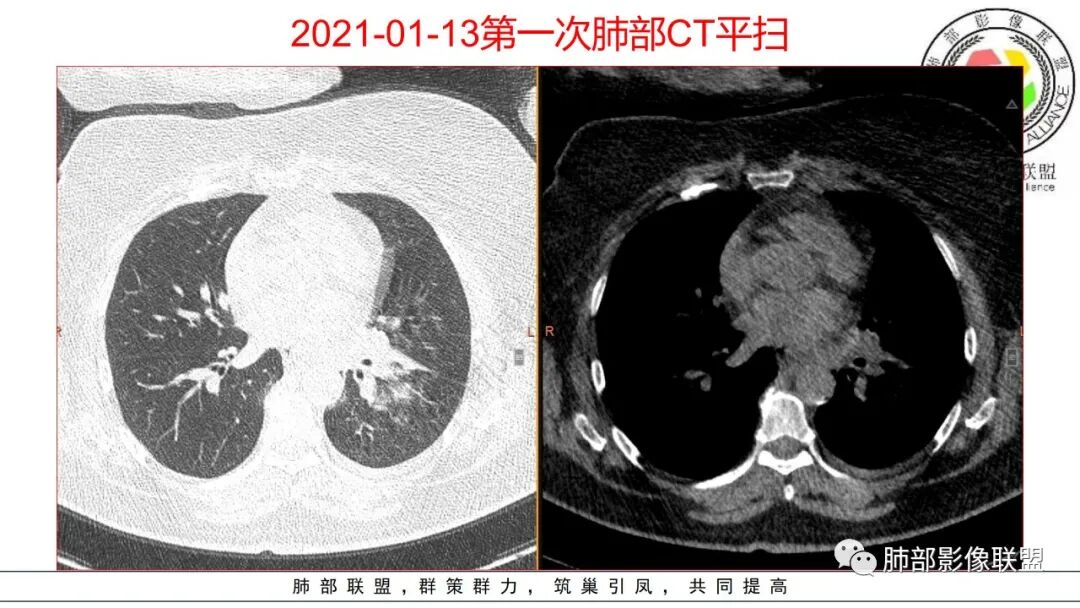 今天的晨读病例没看到树芽征,还是明显的肺泡病变