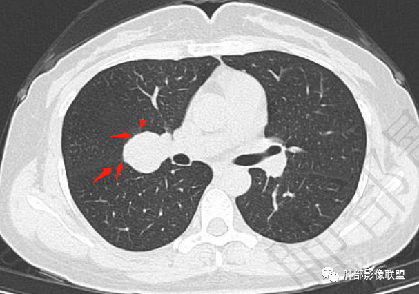 首先,我们判断它与支气管的关系如何,而不是与血管的关系。