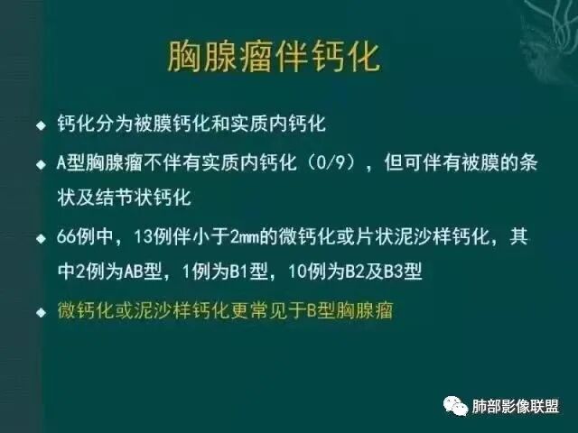 2004年WHO组织学分型根据上皮细胞形态及淋巴细胞与上皮细胞的比例将TET分为A、AB、B1、B2、B3、胸腺癌(包括神经内分泌癌)等亚型。