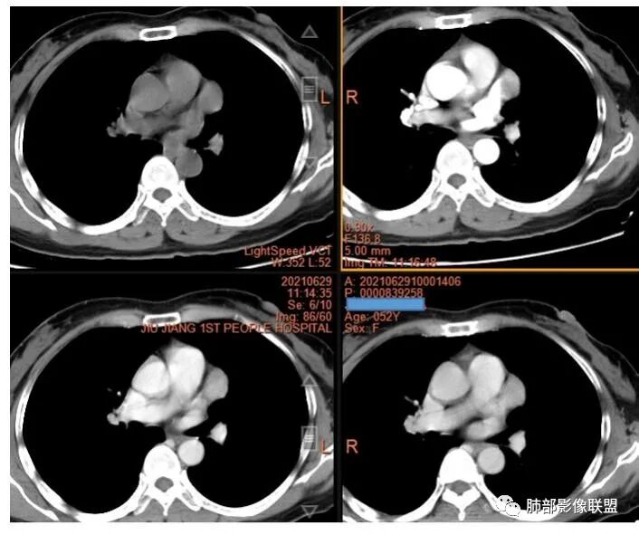 4.余双肺未见病灶,双肺门及纵隔未见增大淋巴结。未见胸腔积液。