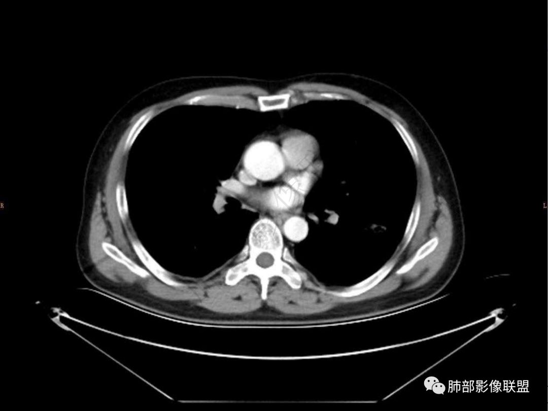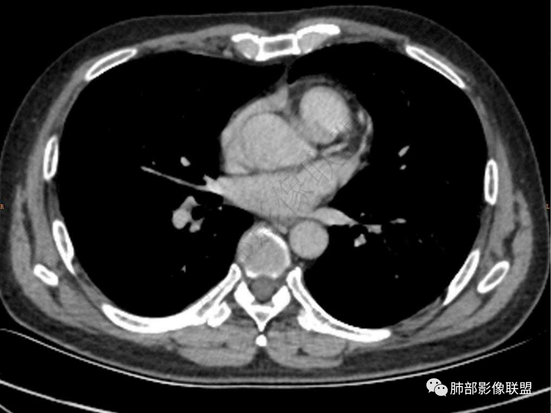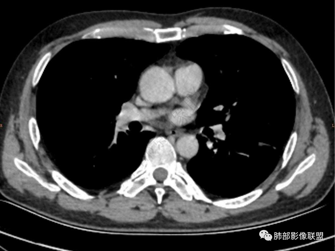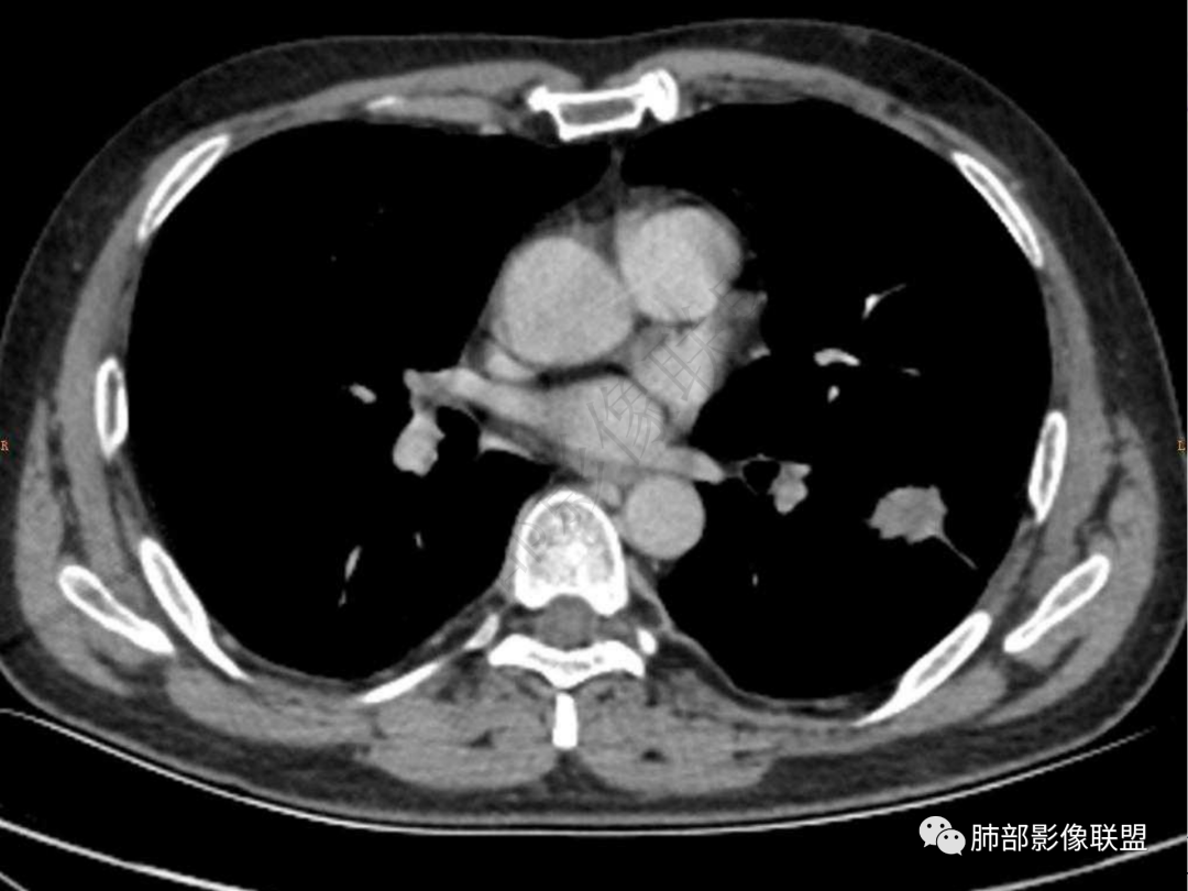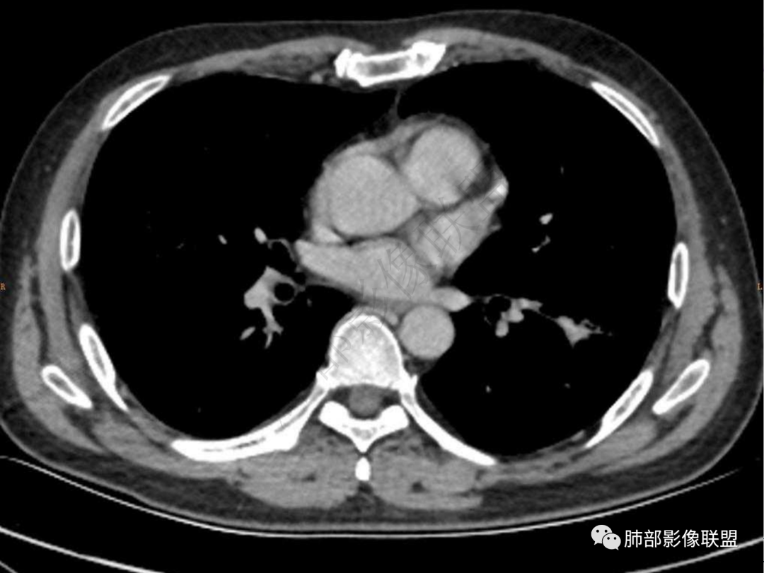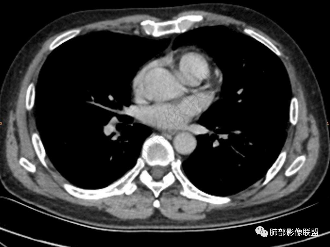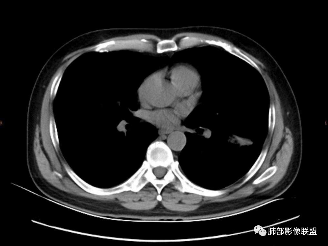 5.双肺门及纵隔未见增大淋巴结。未见胸腔积液。