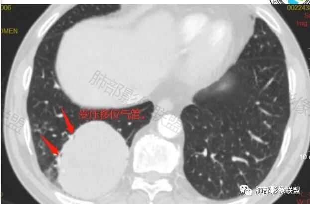 支气管,血管均受压推移,类圆形占位,无分叶,无毛刺,光滑表面,明显均匀强化,倾向于psp,鉴别错构瘤,肉瘤,肉瘤样癌,类癌等神经内分泌肿瘤,转移,imt。