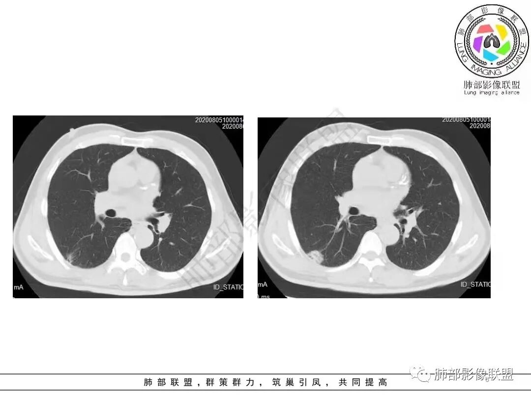青年女性,咳嗽,影像 左肺下叶胸膜下结节,融合,蘑菇兄弟,支持PC