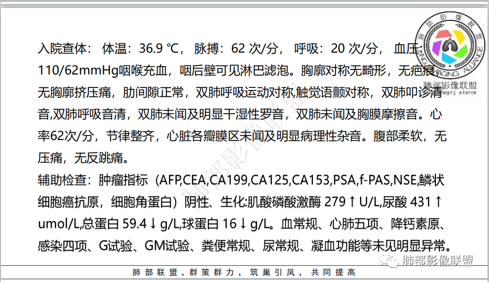 临床思路:1、整体一元感染,结核,隐球可以这样改变,查隐球荚膜抗原和结核相关指标,结核>隐球。2、二元,双肺多发小病灶考虑结核,大的结节存在腺癌或结节型粘液腺癌可能,穿刺活检明确。3、转移?中年男性,双肺无症状多发病灶需要考虑,但是肿瘤标志物阴性,没有明确肿瘤史,可能小。至于读片,还是考虑炎性肉芽肿可能最大:结核>隐球。