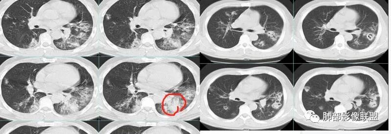 特意看,没看到壁厚的支气管。似乎有细网格,有没可能病毒后继发金葡菌?