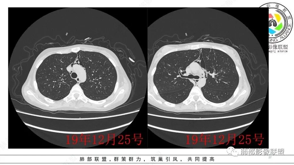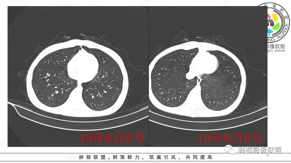 青年女性,移植术后,支气管管壁略增厚,进行性扩张,多发小结节,考虑闭塞性支气管炎,跟大家学习