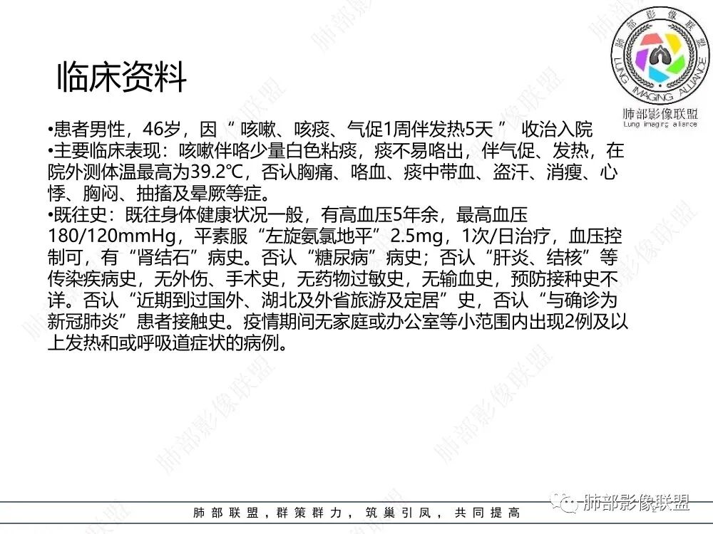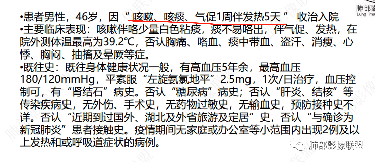 46岁男性,咳嗽、咳痰伴发热入院